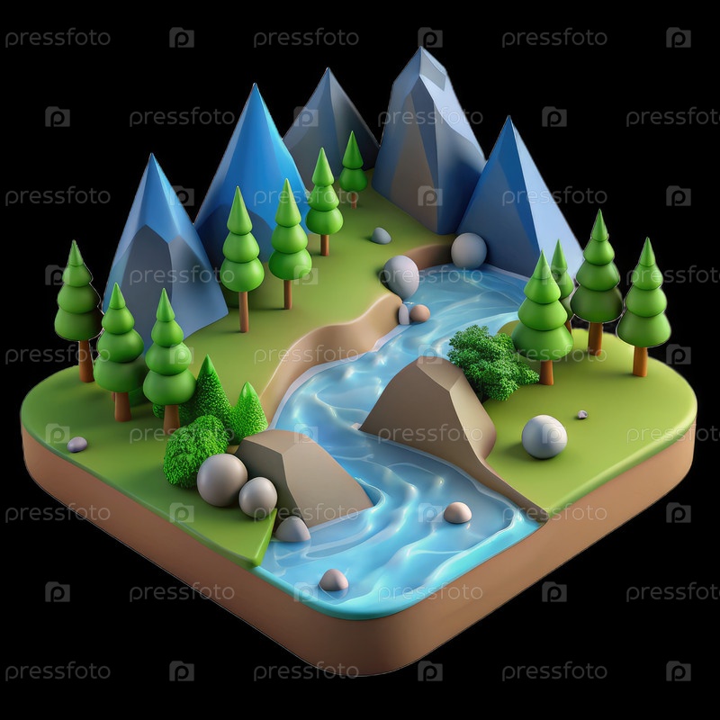 Живой пейзаж с рекой, горами и пышной зеленью в безмятежной обстановке