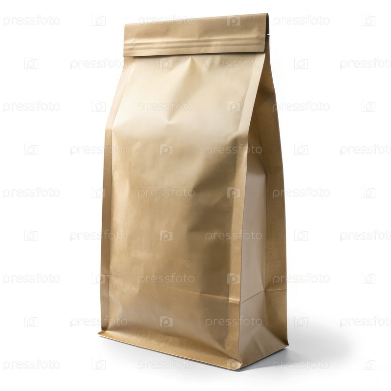 Крафт-коричневый плоский нижний мешок с блестящей белой отделкой, отображаемой на стандартной шкале