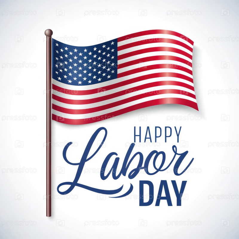Карточка с Днем труда, на которой размахивается американским флагом и праздничное приветствие