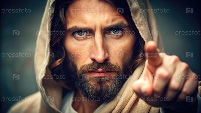 Впечатляющее изображение Иисуса Христа, сосредоточенное на его интенсивном взгляде и жесте руки