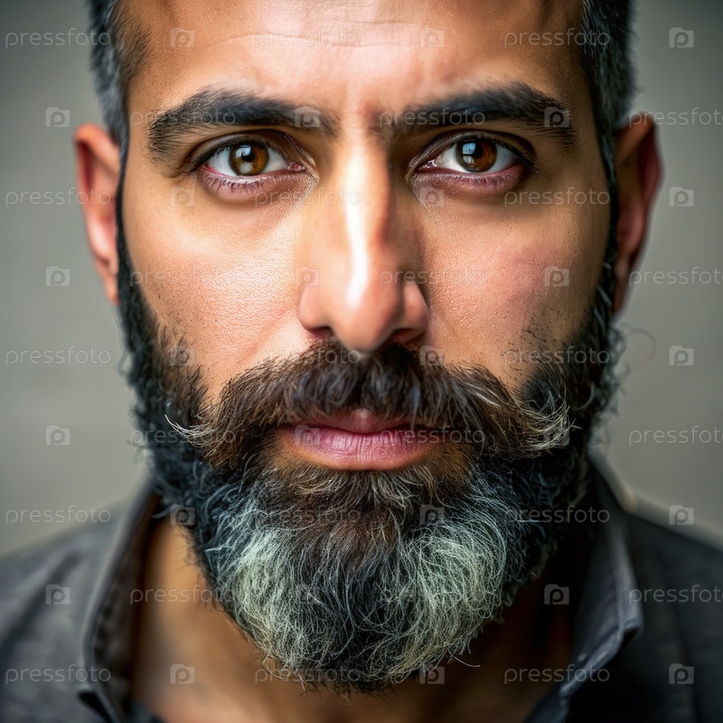 Сорокалетний мужчина с поразительными глазами и ухоженной бородой в помещении