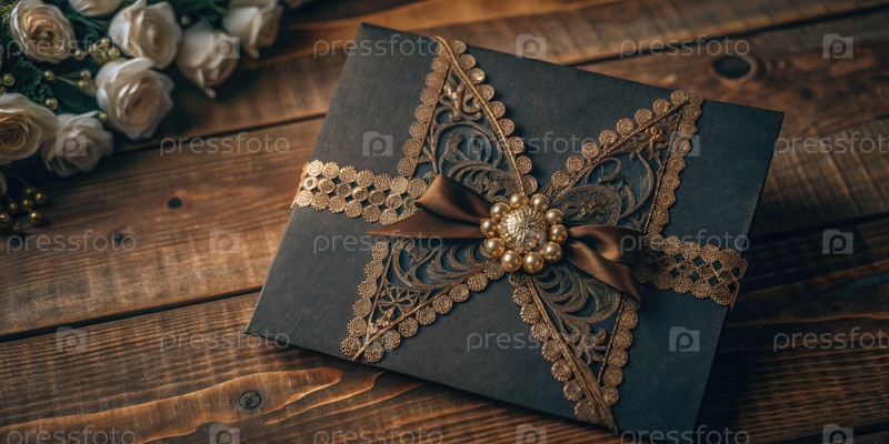 Элегантная винтажная свадебная приглашение поздравление на деревянный стол