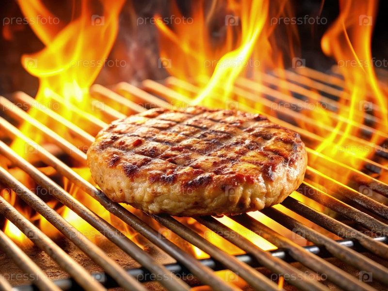 Горячие хлопья из фаршированной свинины, раскаленные на открытом огне на летнем барбекю
