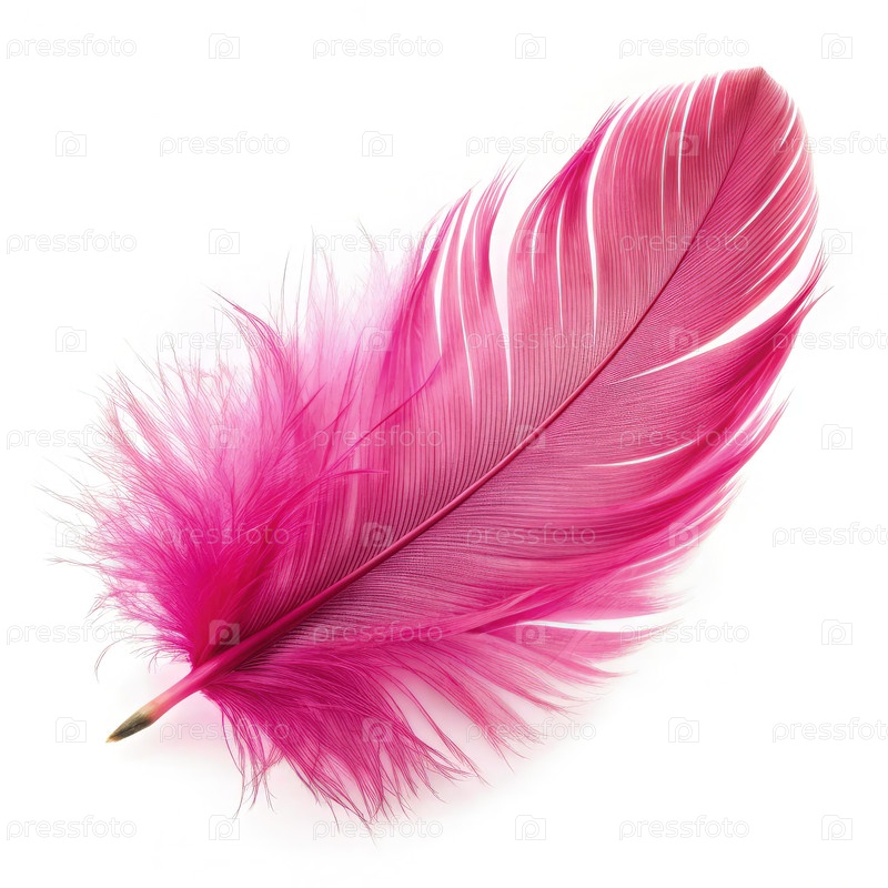 Розовое перо на белом фоне, демонстрирующее тонкие детали и текстуры