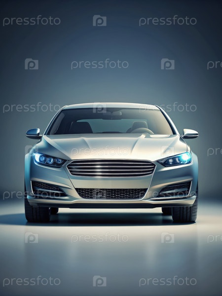Утонченный мокет серебряного автомобиля в студийной обстановке с драматическим освещением