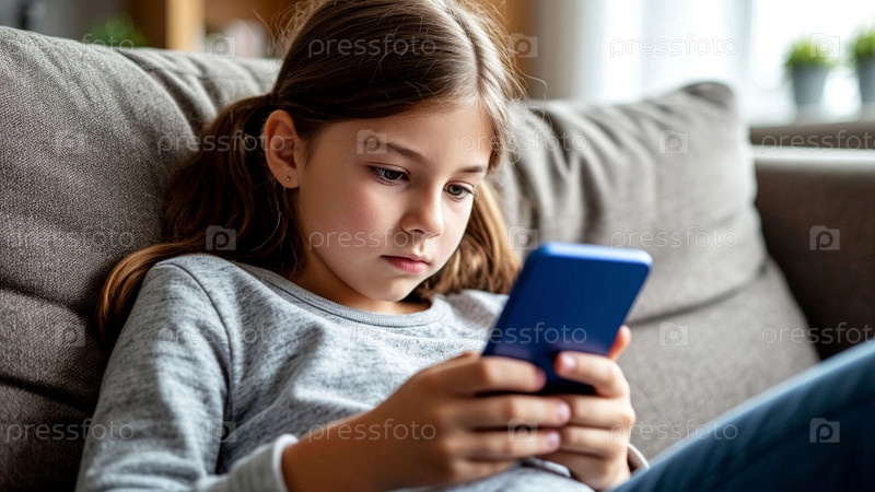 Девочка школьного возраста держит телефон в руках, смотрит на экран