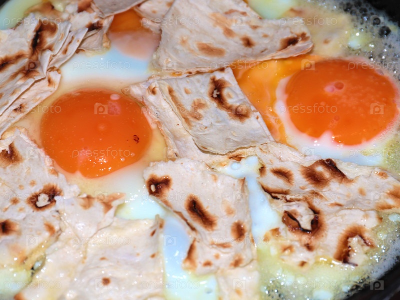Приготовление смешанных яиц для семейного утреннего завтрака