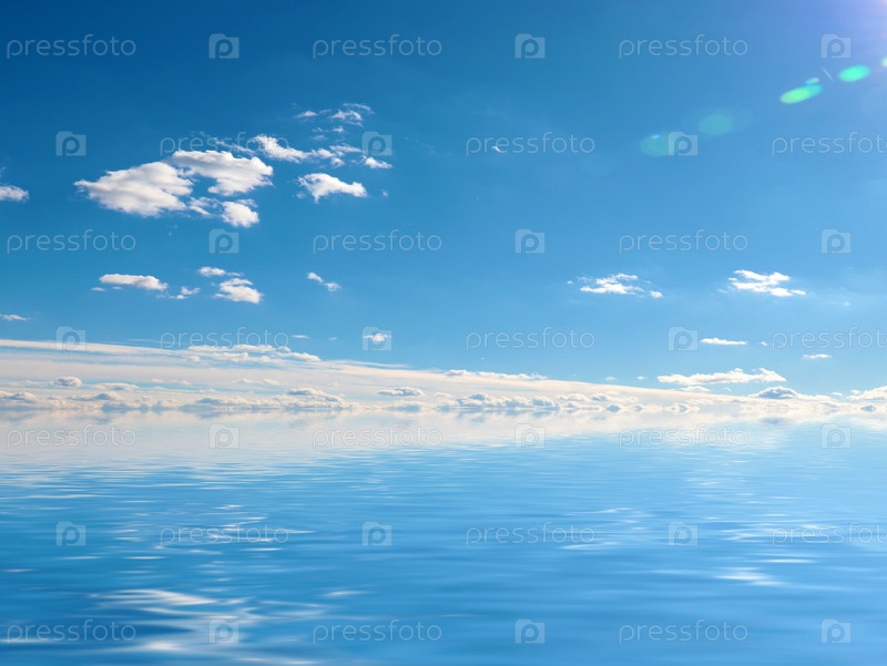 Прекрасное облачное небо отражается на спокойной поверхности моря