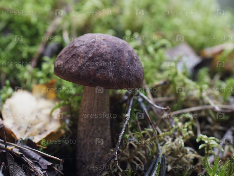 Подберезовик в лесу среди мха и лишайников Ленинргадская область