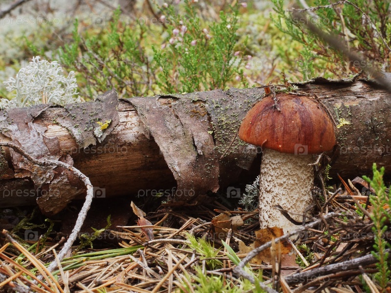 Яркий кирпичный подосиновик сосновый среди иголок Ленинградская область