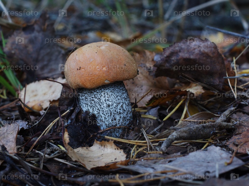 Яркий оранжевый подосиновик березовый в лесу Ленинградская область