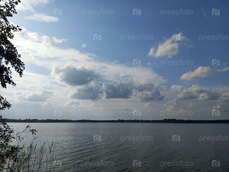 Белые кучевые облака в синем небе озеро Белое Лужский район Ленинградская область