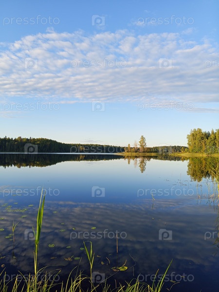 Белые перистые облака в синем небе озеро Лопино Тверская область