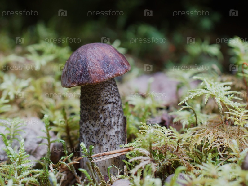 Подберезовик в лесу среди мха и лишайников Ленинргадская область