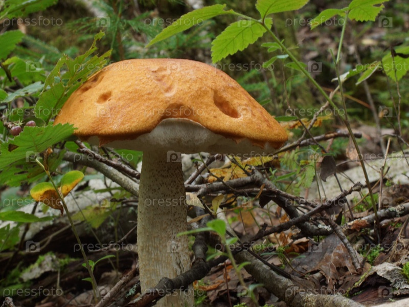 Яркий оранжевый подосиновик березовый в лесу Ленинградская область
