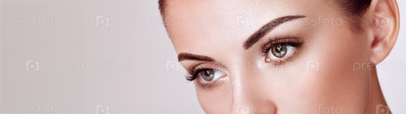 Красивая женщина с длинными ложными ресницами