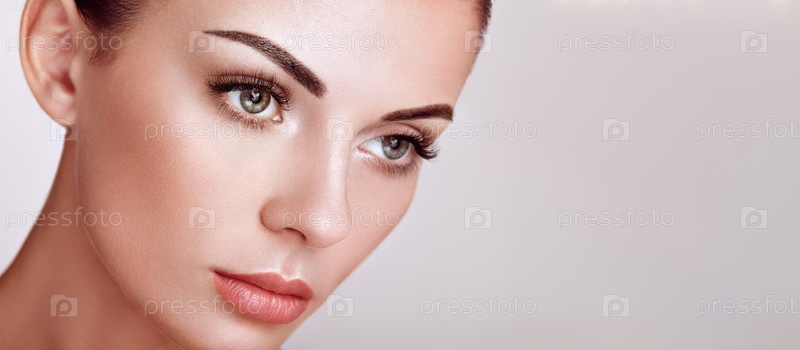 Красивая женщина с длинными ложными ресницами