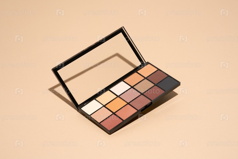 Палитра макияжа плавает на бежевом фоне