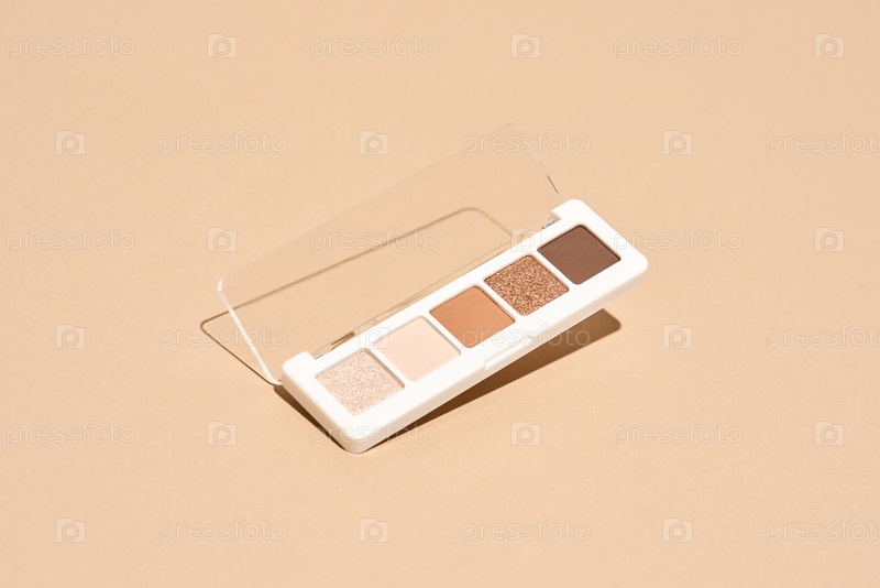 Палитра макияжа плавает на бежевом фоне