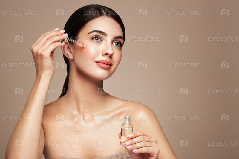 Молодая красивая женщина наносит сыворотку для лица