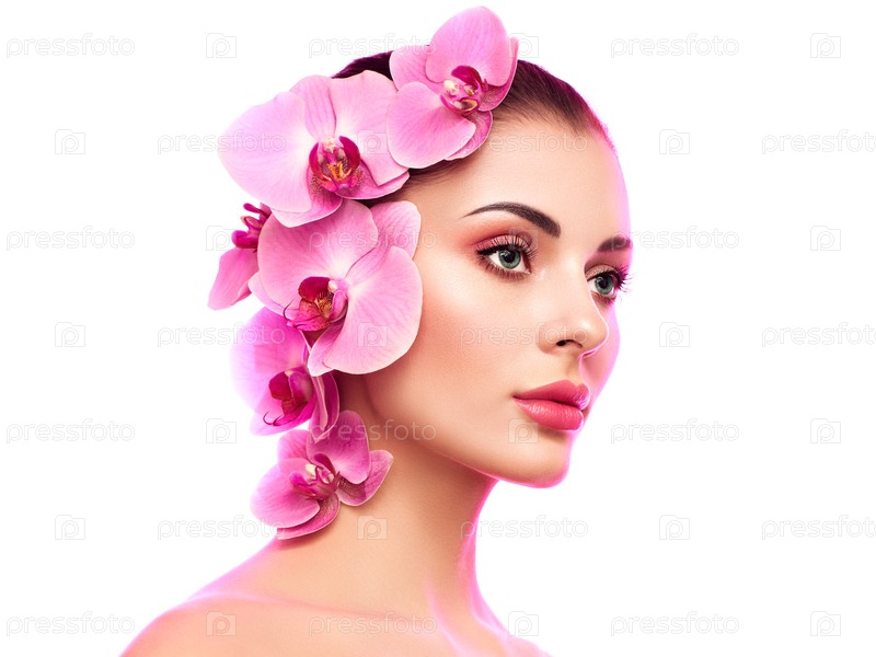Портрет красивой молодой женщины с орхидеей