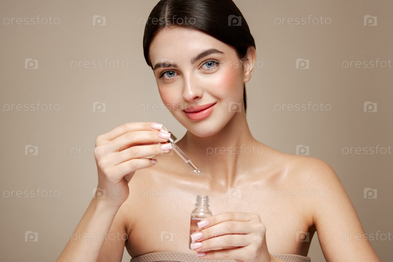 Молодая красивая женщина наносит сыворотку для лица