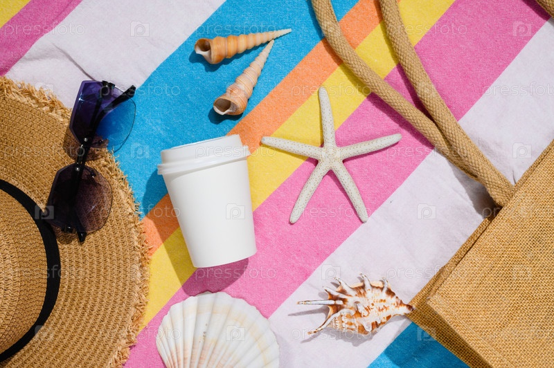 Белая бумажная чашка на пляже, место для логотипа, экологически чистый стакан