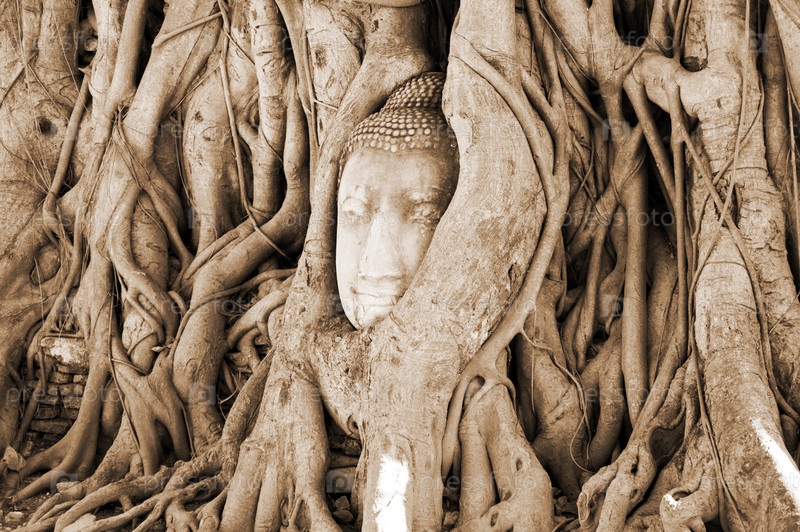 Каменная голова Будды в храме Wat A Prha Mahathat Temple