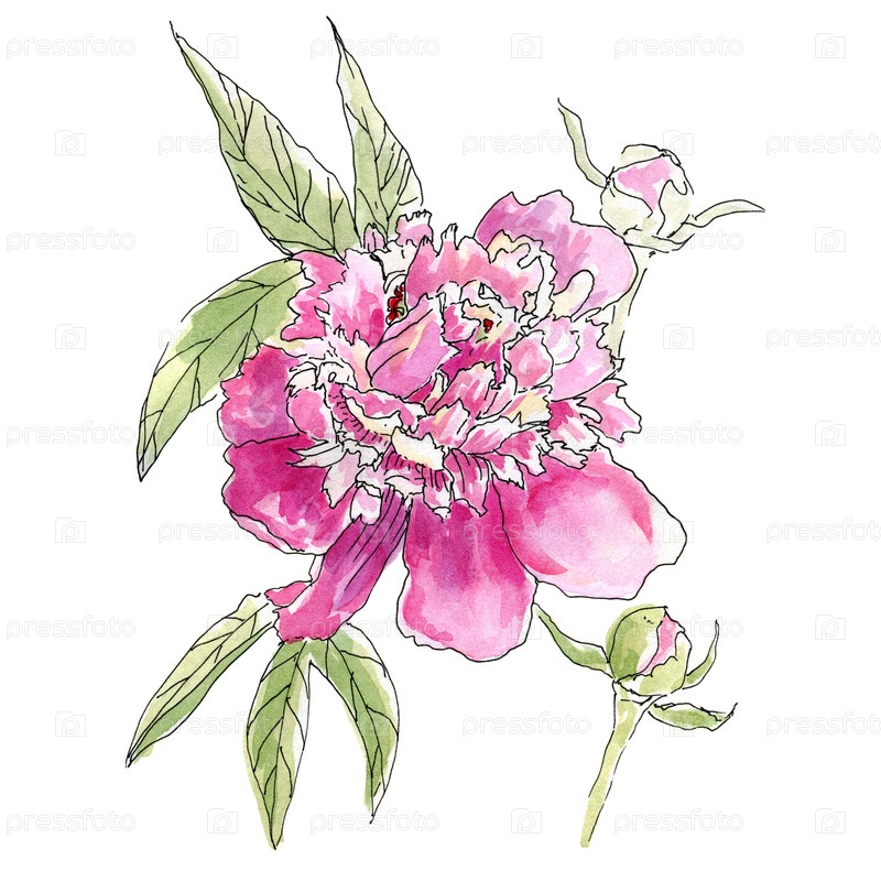 Рука рисует акварельный пион в стиле эскиза. дизайн для открытки или приглашения