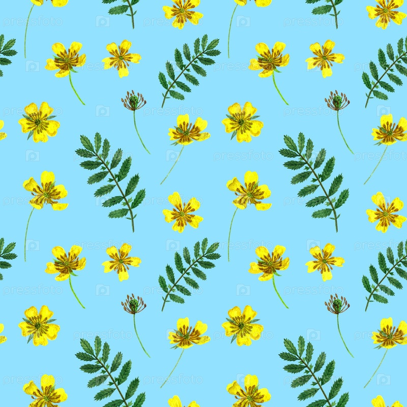 Ranunculus acris. акварель дикие цветы бесшовный рисунок. дизайн для ткани, настенных покрытий, открыток, приглашений, бумаги для скрапбуков или упаковочной бумаги