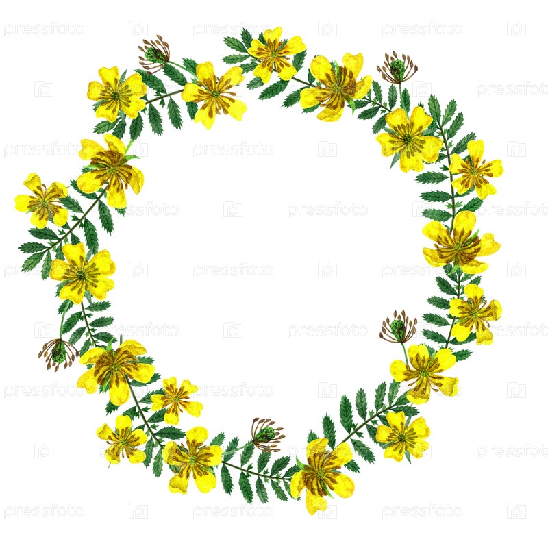 Венок акварельных желтых диких цветов Ranunculus acris Дизайн для приглашений и открыток