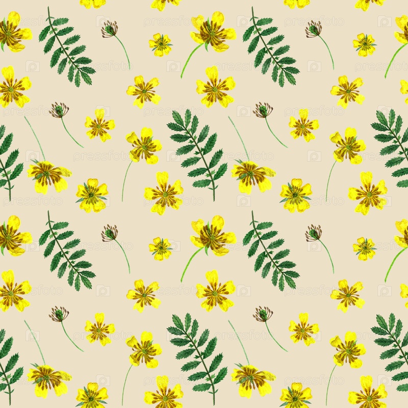 Ranunculus acris. акварель дикие цветы бесшовный рисунок. дизайн для ткани, настенных покрытий, открыток, приглашений, бумаги для скрапбуков или упаковочной бумаги