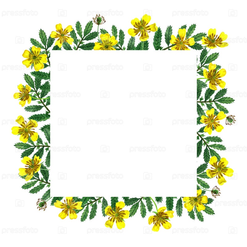 Акварель желтые дикие цветы квадратная рама Ranunculus acris Дизайн для приглашений и открыток