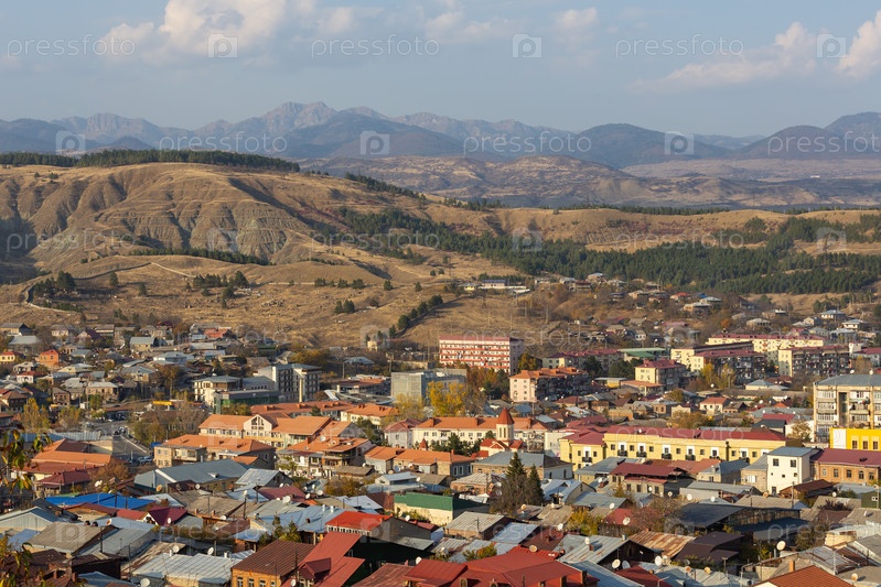 Панорамный вид на город Акалцихе и горы в Грузии