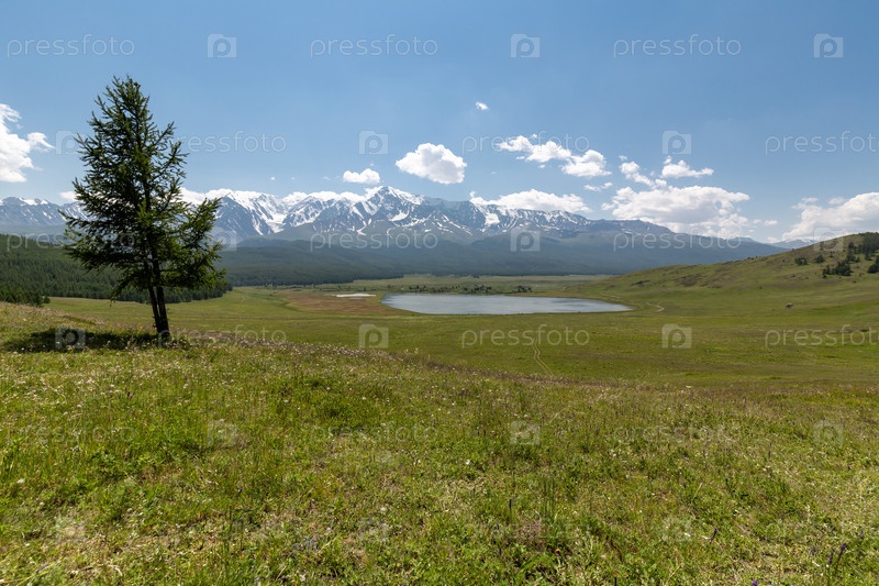 Панорама высокогорного озера Джангискель в Алтайских горах