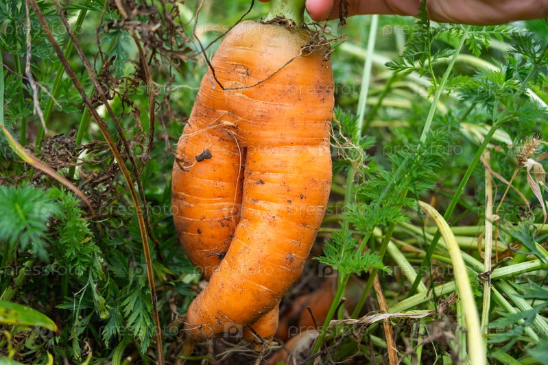 Морковь-близнец с забавной формой, собранная вручную, домашняя садовая культура, выращенная естественным образом, без удобрений, органическая, причудливая богатая витаминами корня, экологичная и здоровая