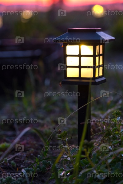 Декоративный солнечный ландшафтный фонарь, многолетняя граница, садовая тропа, декоративные травы, мульча, стильный светодиодный акцент, современный эко-садовый дизайн