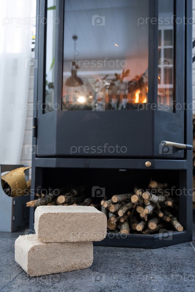 Брикеты из древесного топлива, хранящиеся рядом с печью, биомассовый источник отопления, эко-альтернатива, эффективное домашнее отопление, кризисный и экономически выгодный вариант, устойчивая биомасса