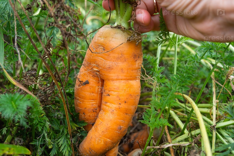 Две необычные морковь, уникальная и забавная форма, органически выращенные без удобрений, отбираемые вручную свежие, натуральные эко овощи, самостоятельно выращенные на домашнем участке