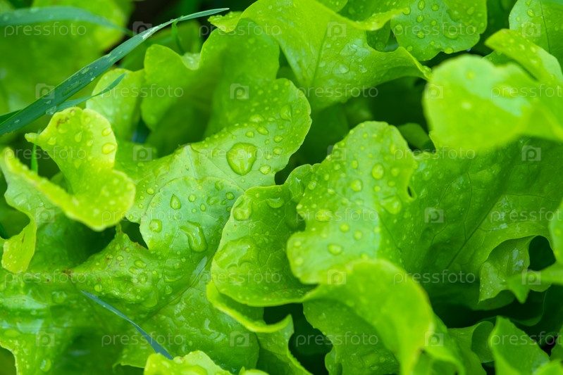 Зеленый салат в ближайшем плане, выращенный дома в естественной постели, органический салат, здоровые листья, наличие сорняков, экологически чистый огород на овощном участке