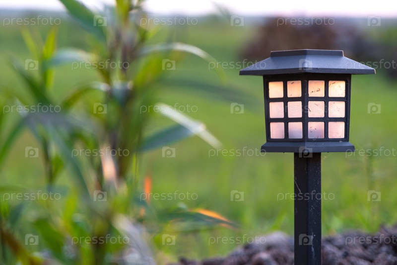 Современный солнечный фонарь в стиле, многолетняя смешанная оборона, мульча с декоративными травами, светодиодные энергосберегающие наружные акценты, устойчивый ночной дизайн