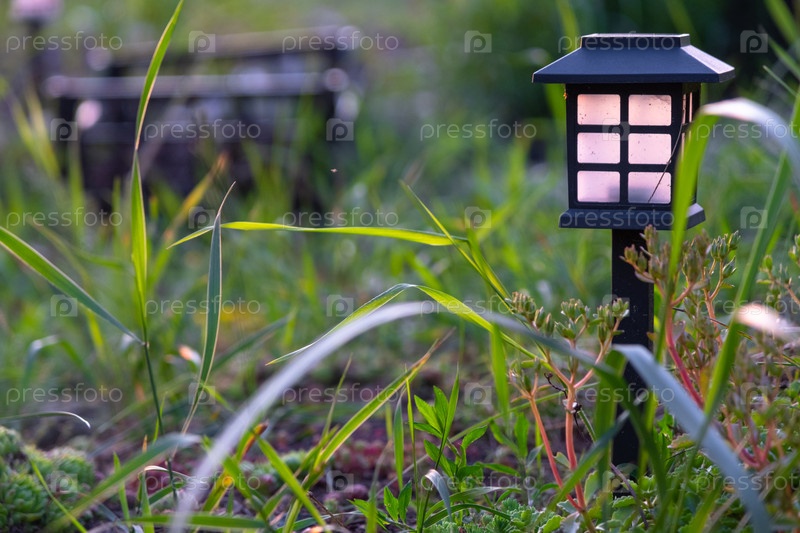 Садовый солнечный светодиодный фонарь, мульчевая клумба, многолетняя и декоративная смесь травы, экоэнергоэффективный акцент для современной мягкой границы ландшафта