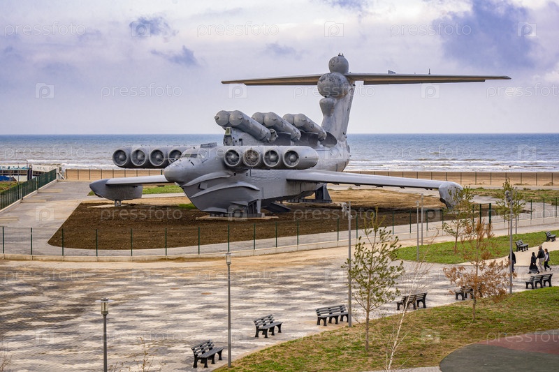 Штурмовый экраноплан советской эпохи "Луна" на побережье Каспийского моря, Дагестан