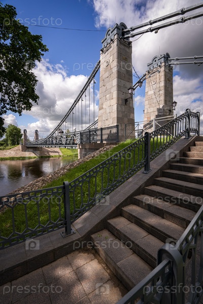 Город Остров, Цепной мост через реку Великая. Псковская область, Россия