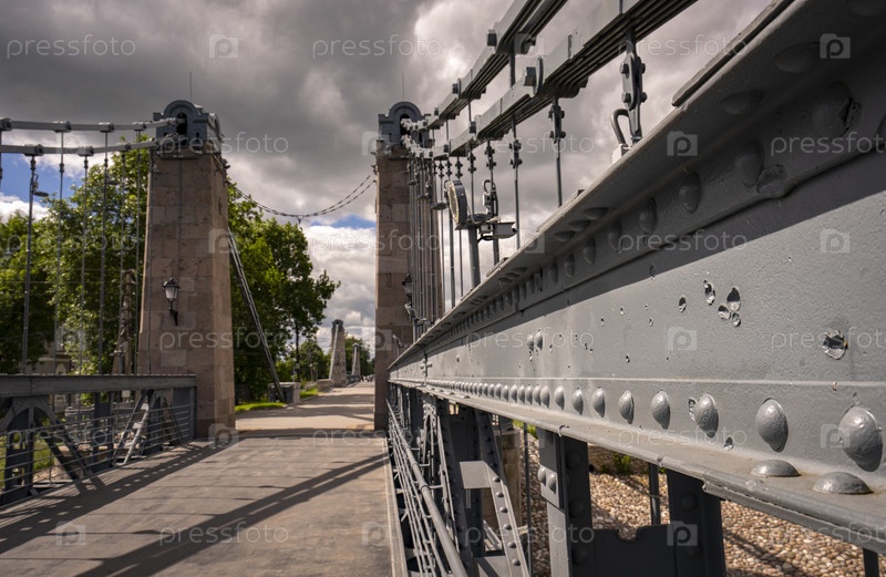 Город Остров, Цепной мост через реку Великая. Псковская область, Россия