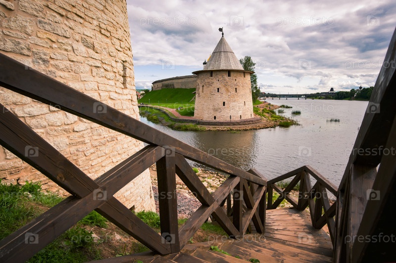 Псковский кремль на реке Великой. Город Псков