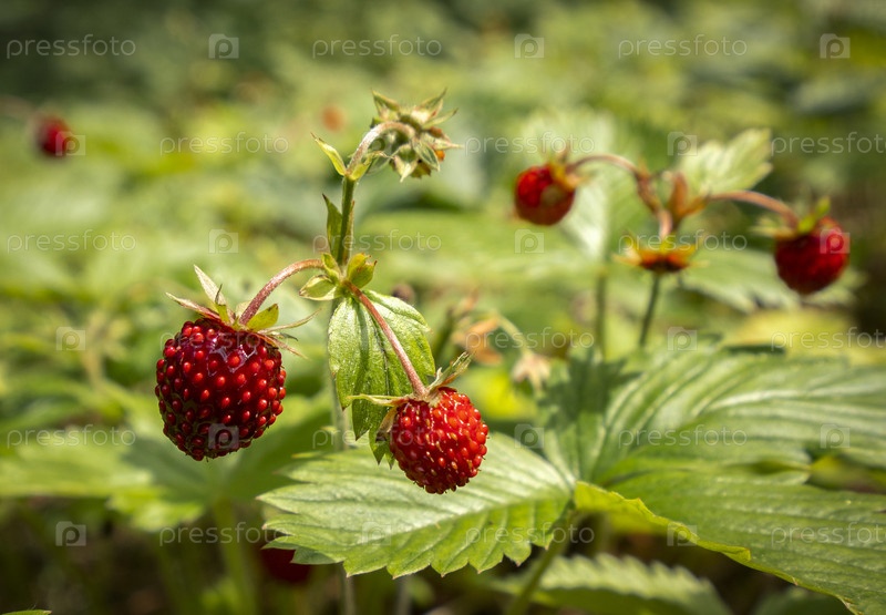 Ягоды земляники на лесной поляне
