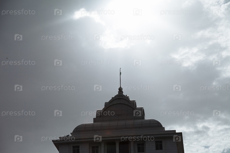 Широкий бульвар с белыми мраморными правительственными зданиями в Ашхабаде, Туркменистан, современный пустой городской пейзаж