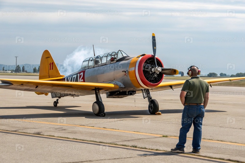 Счастливый наземный экипаж подготовил частный легкий самолет ЯК-52 к взлету
