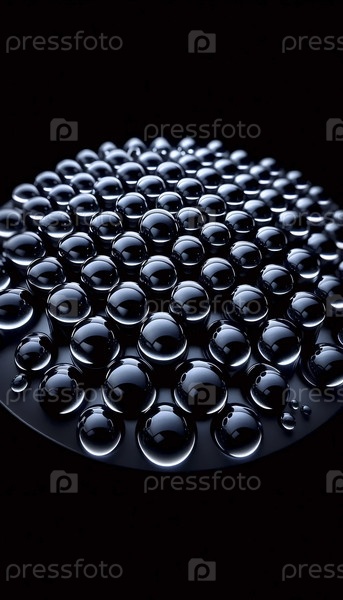Микроскопическая сетка идеальных капель воды на стеклянном черном ногте, Ai generated image